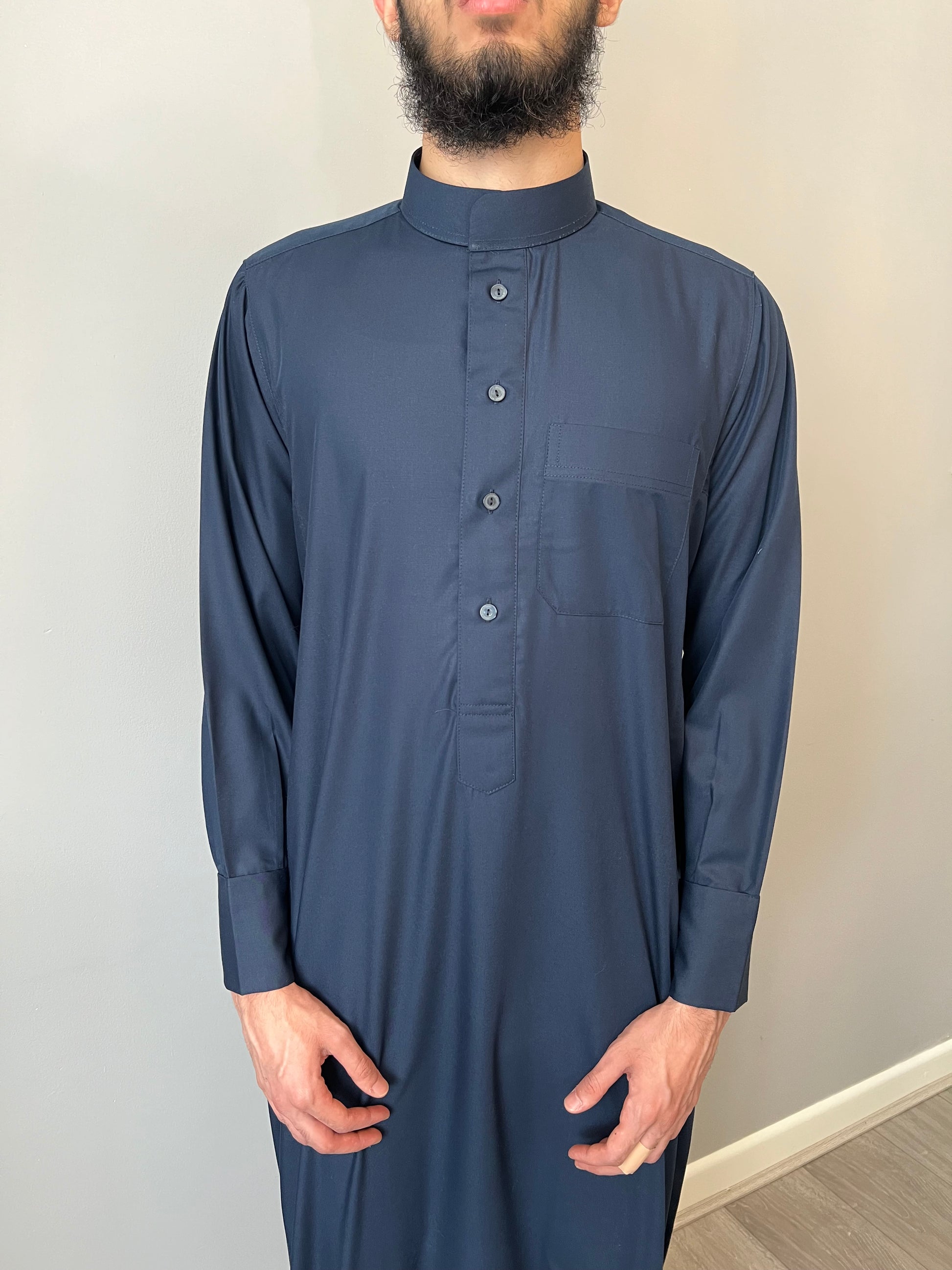 Premium Saudi Style thobe, available in a variation of Lengths and Widths. Please visit out sizing chart for more information of what size should best fit you